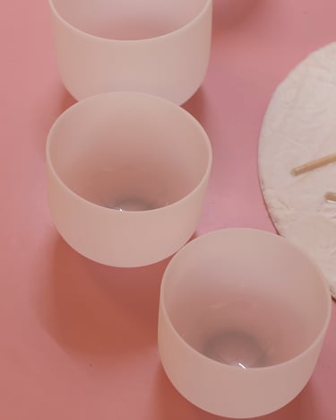 Ich arbeite ausschließlich mit Frosted Crystal Singing Bowls und habe meine Ausbildung in München bei Verena Anna Sager absolviert.